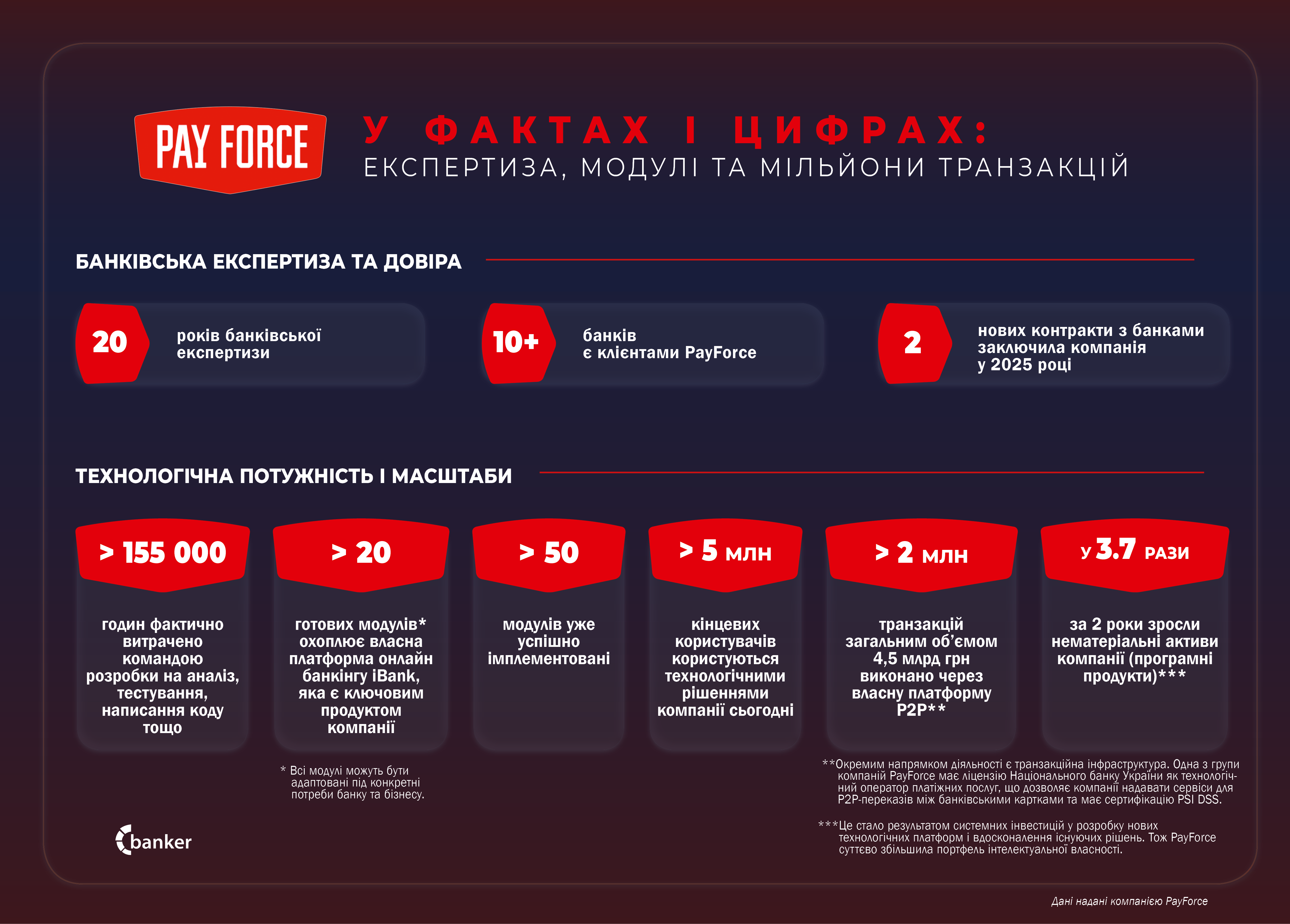 Тому, завдяки розвитку інноваційних рішень, високим стандартам безпеки та підтримці міжнародних технологічних стандартів PayForce отримала галузеве визнання «Fintech Company of the Year» під час церемонії Ukrainian Fintech Awards 2026, що підтверджує роль PayForce як одного з ключових технологічних партнерів банківської системи України у розвитку цифрових фінансових сервісів.