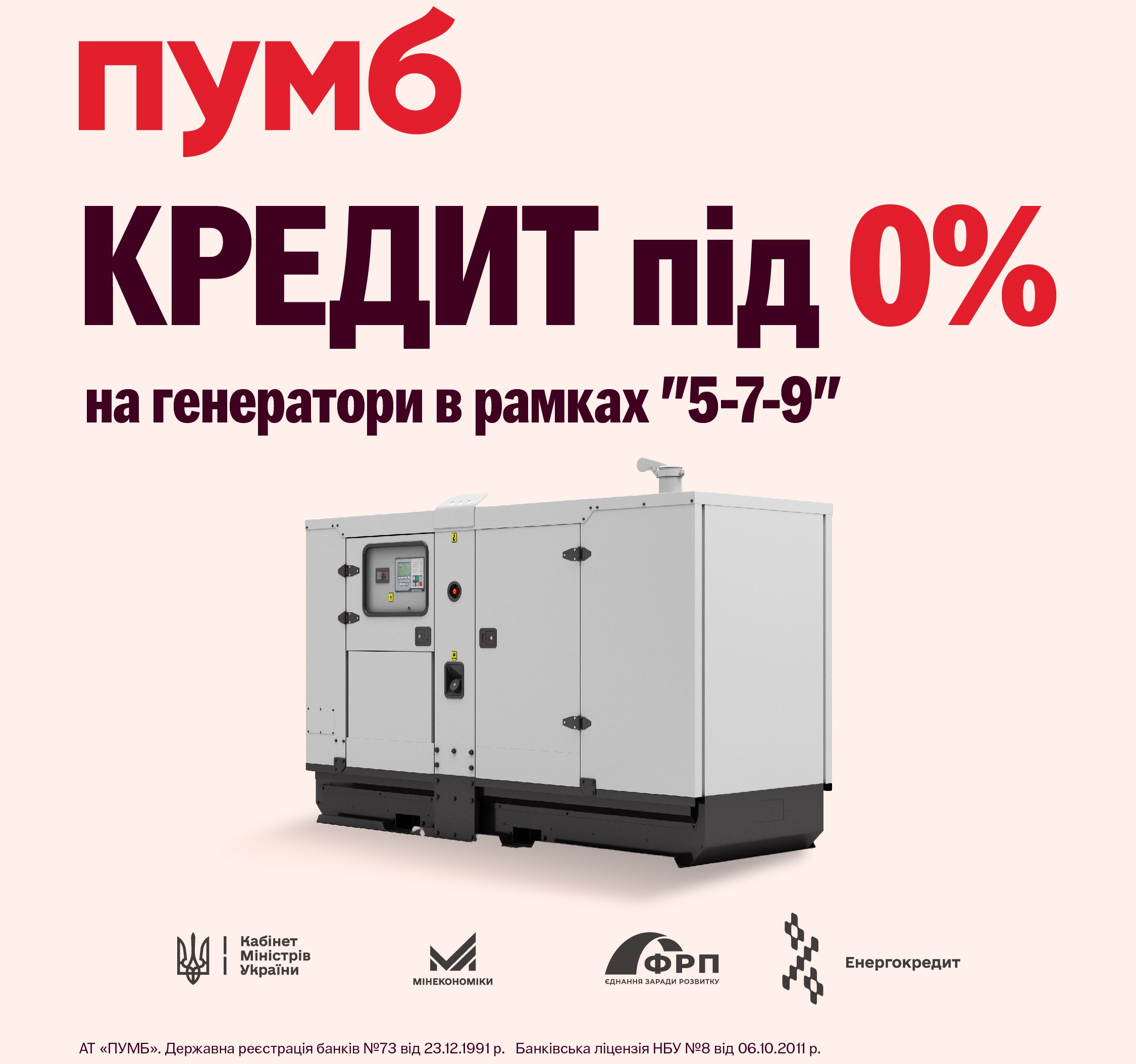 ПУМБ видав перший кредит під 0% на закупівлю генератора у рамках програми “5-7-9”